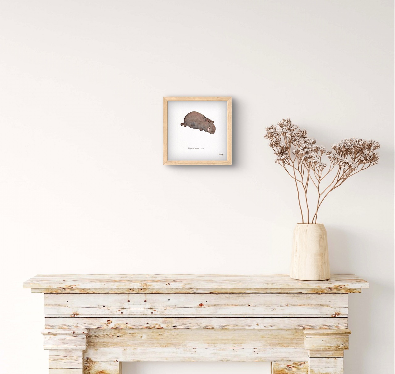 動物園でのスケッチをもとに描き起こしました。モデルは円山動物園にいたカバです。