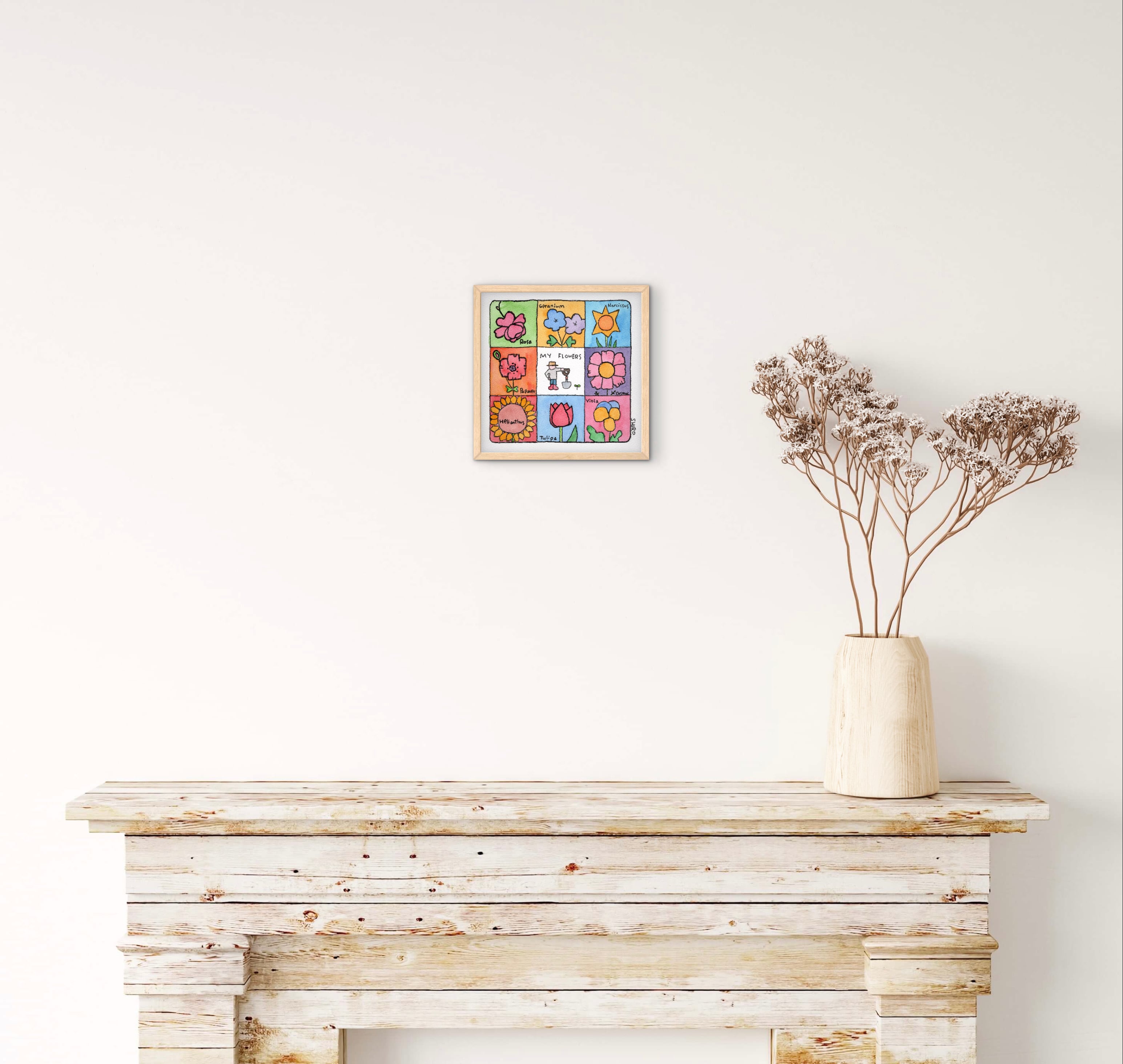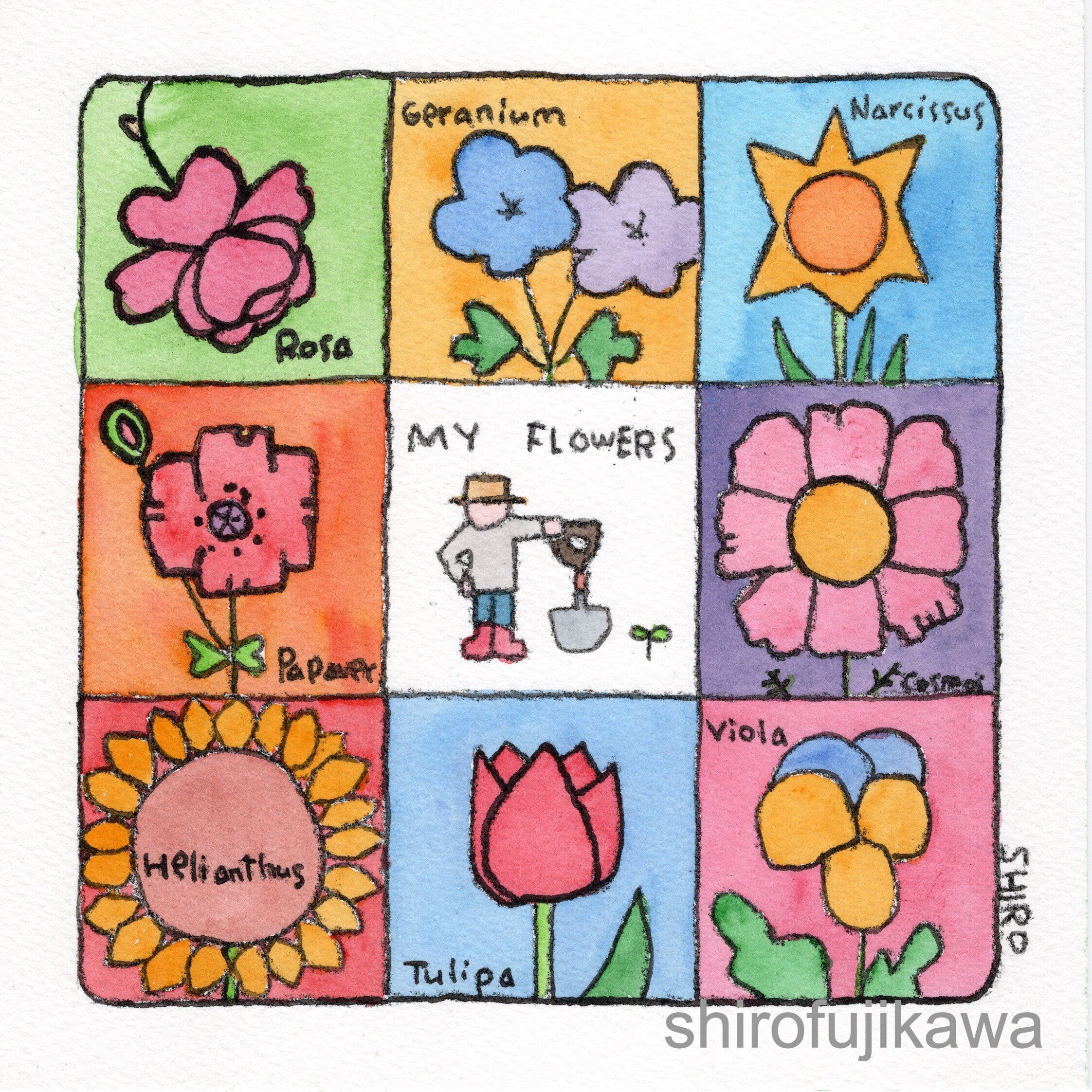 さまざまな花の「顔」を描きました。珍しく輪郭線を描いています。こちらは正方形です。