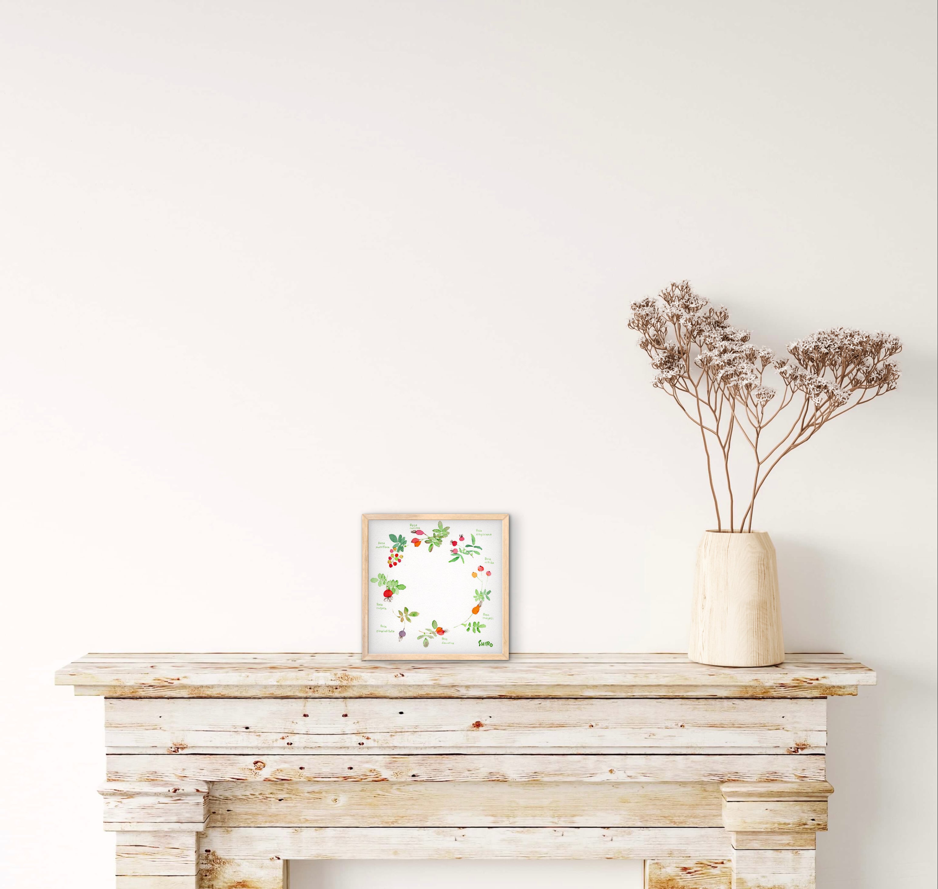 バラの原種の実(ローズヒップ)をサークル状に並べました。バラの原種は花の形は似ているのに実は全く違うところが面白いです。